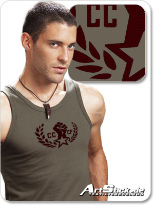 Der Flockdruck ist ein sehr weicher, leicht erhabener und strapazierfähiger Druck, der durch seine starke Deckkraft für helle wie auch dunkle Stoffe geeignet ist.